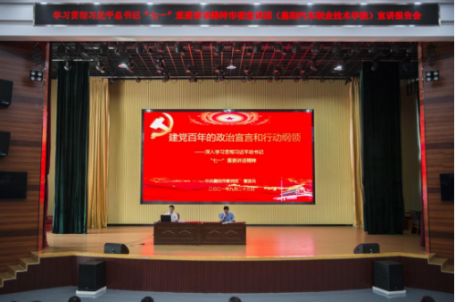 9月23日,学习贯彻习近平总书记“七一”重要讲话精神报告会在我校科学会堂举行,中共襄阳市委党校党史党建教研室主任、习近平总书记“七一”重要讲话市委宣讲团成员曹彦兵作宣讲报告。