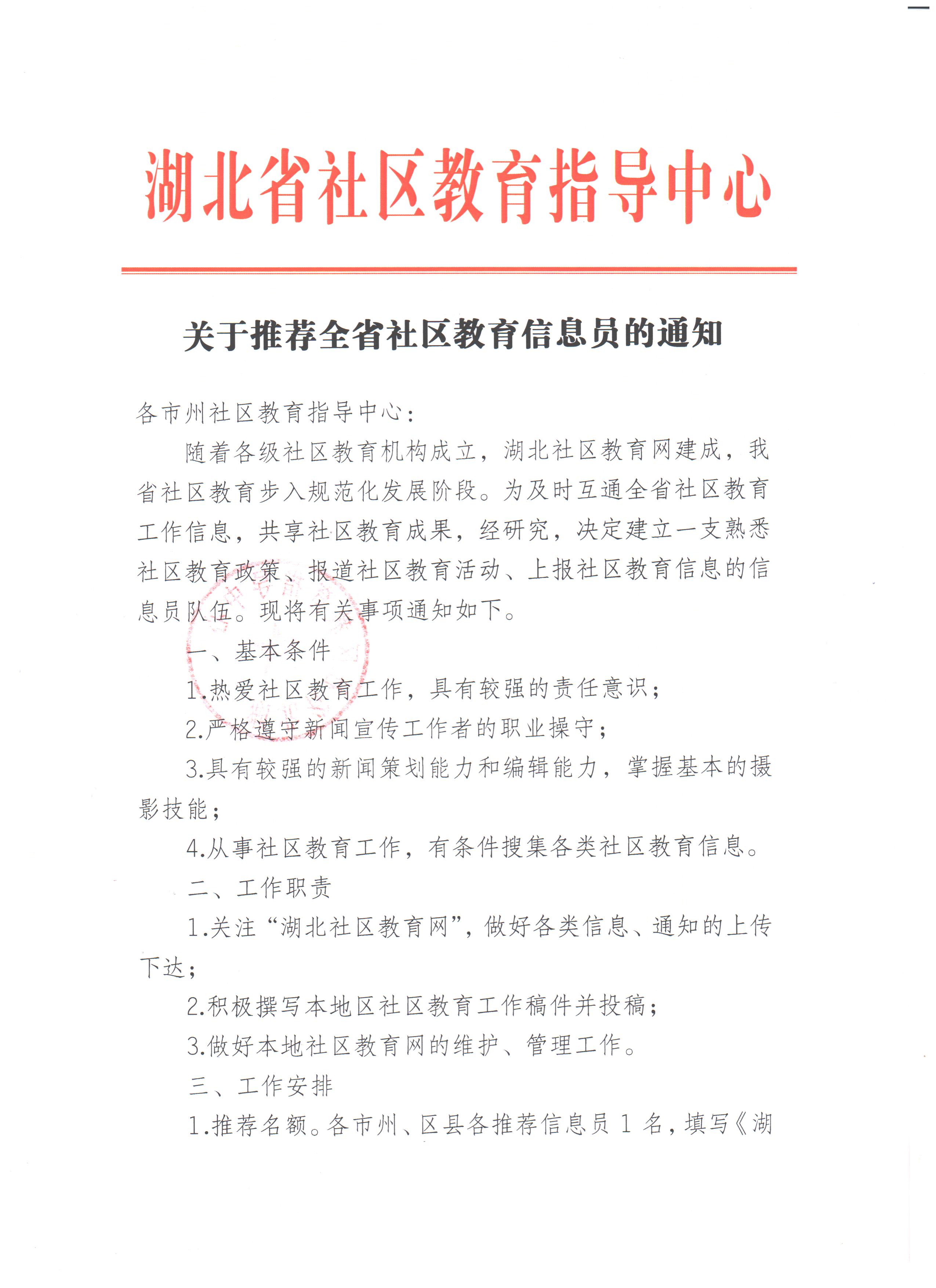 转:《博鱼登录推荐全省社区教育通讯员的通知》