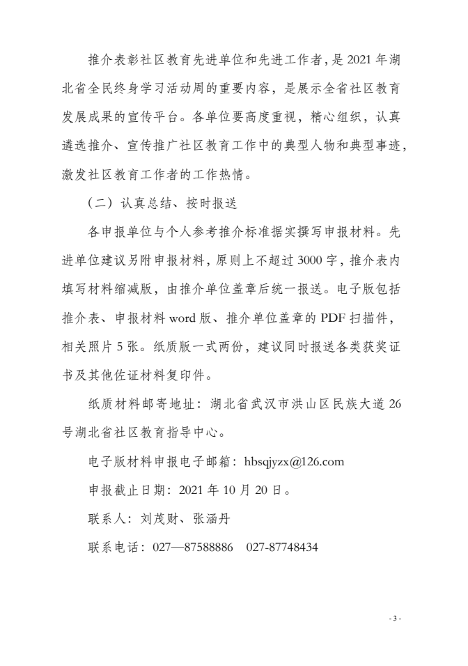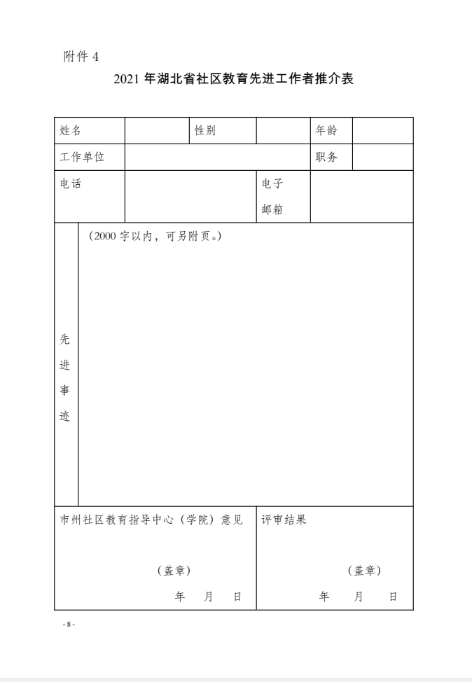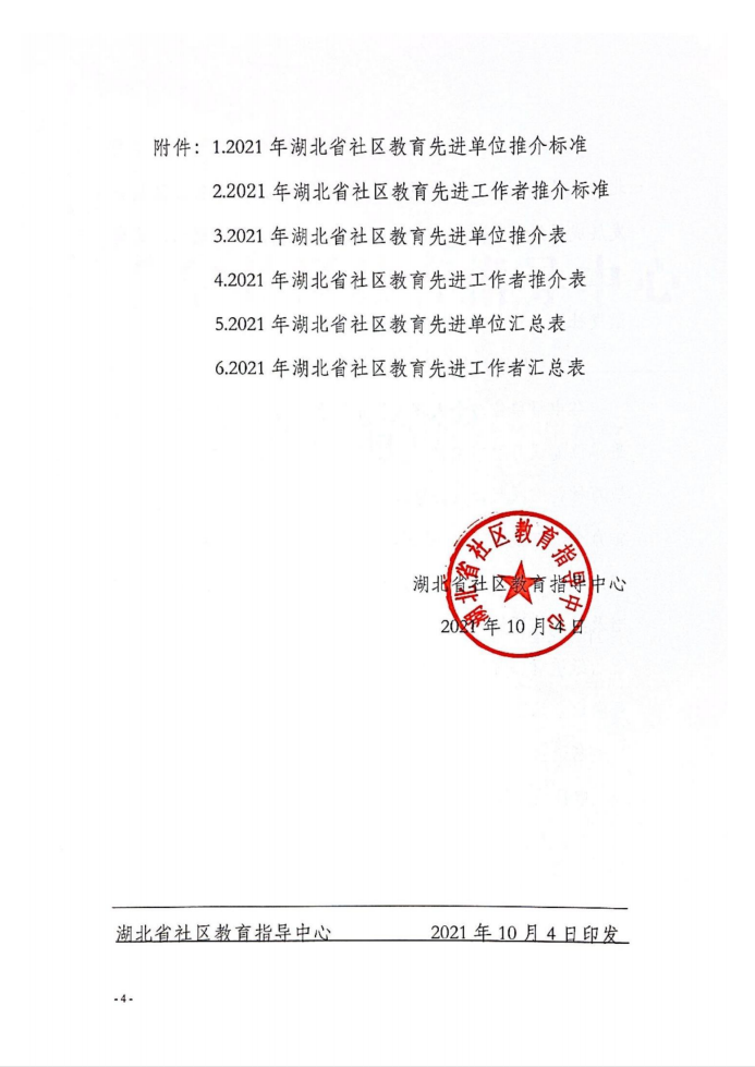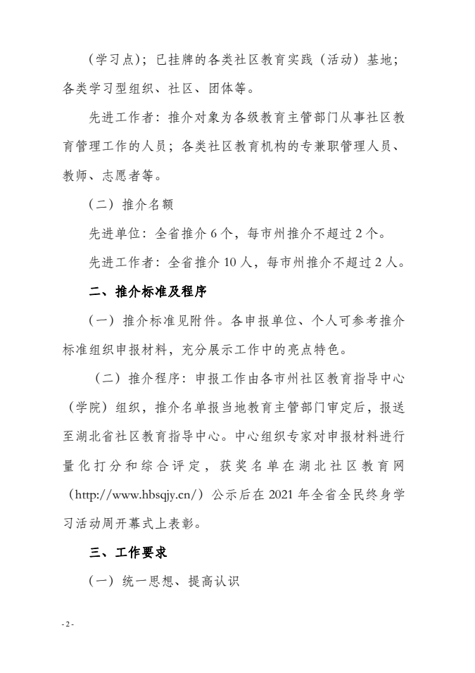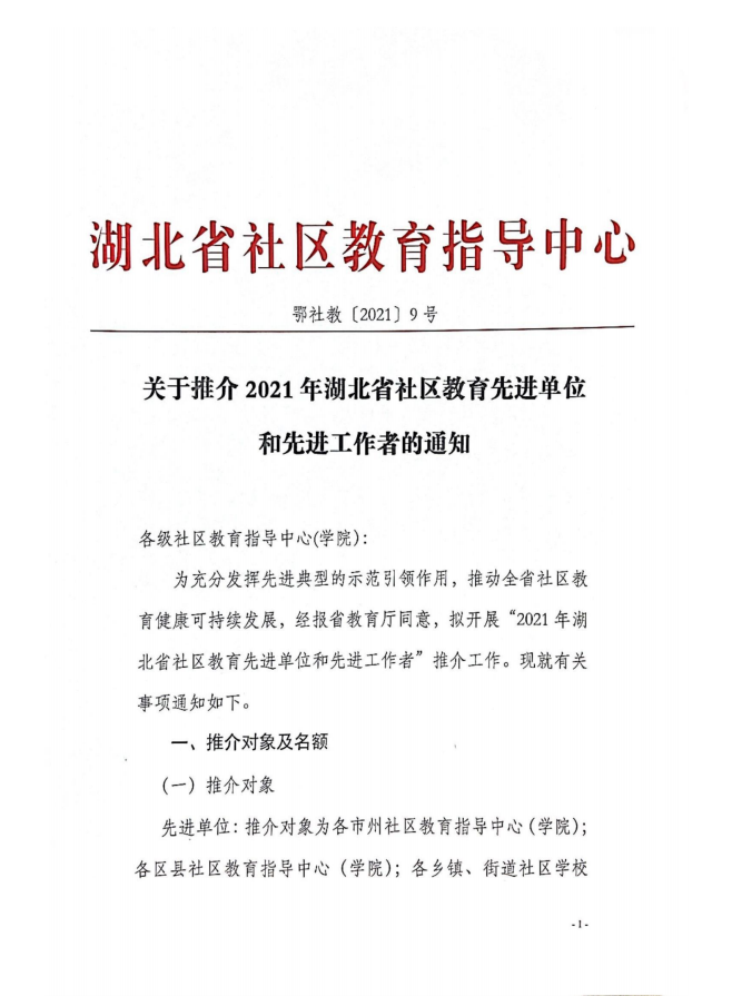 转发湖北省社区指导中心“博鱼登录推介2021年湖北省社区教育先进单位和先进工作者的通知”