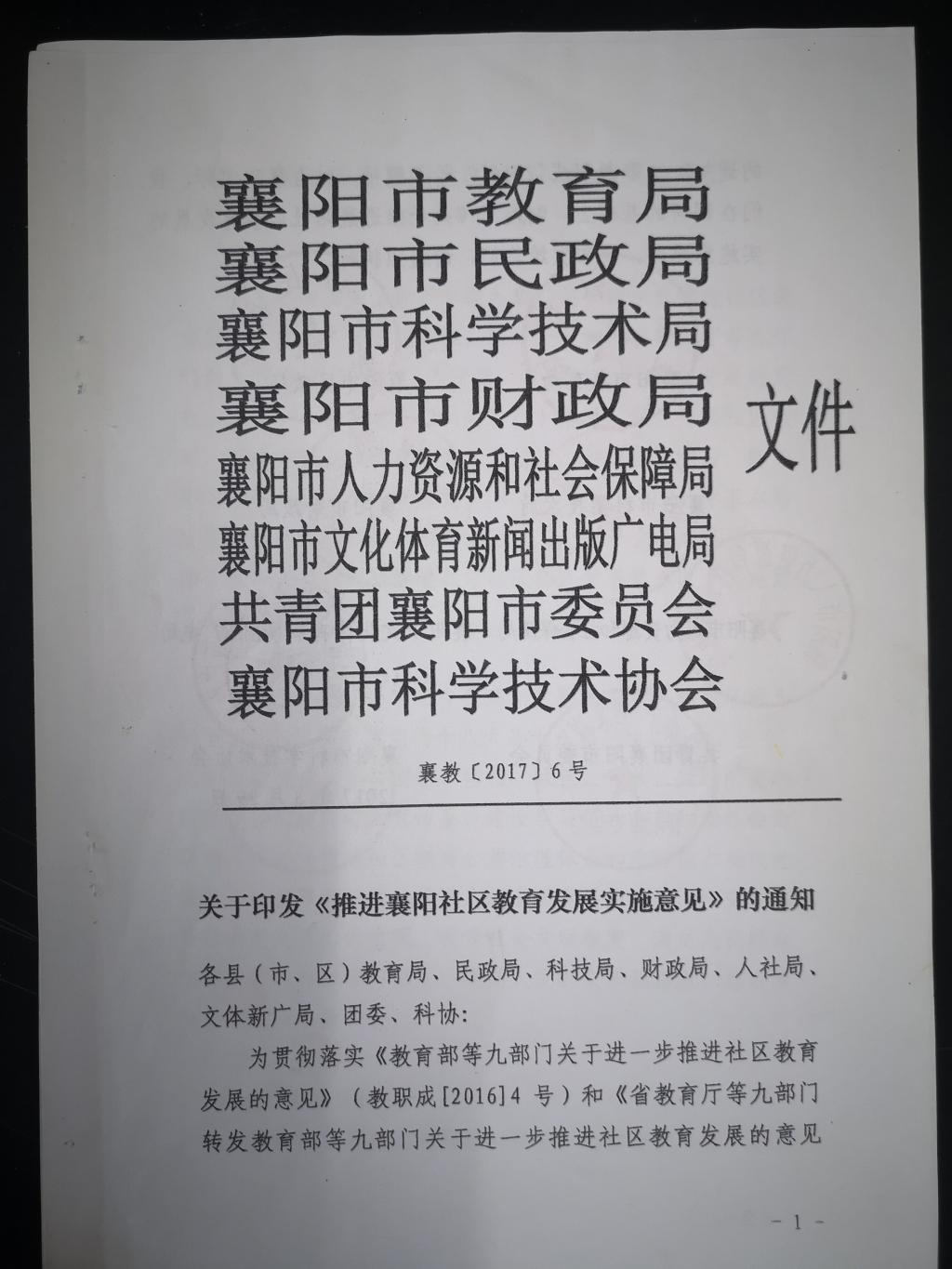 博鱼登录印发《推进襄阳社区教育发展实施意见》