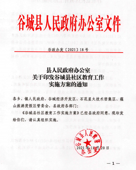 (通讯员 周修刚/文) 经谷城县教育局、谷城职教中心的大力推动,2021年11月20日,谷城县人民政府办公室以(谷政办发[2021] 18号)向全县印发了《谷城县社区教育工作实施方案》。该方案学习吸收了全省各县市的先进经验,将政府相关职能部门和具有社区教育资源的群团组织设置为全县社区教育工作的成员单位,并在附件中明确了领导小组各成员单位职责。彰显了谷城县委、县政府对全县社区教育工作的高度重视,使社区教育工作保障有力、机制健全、资源丰富。