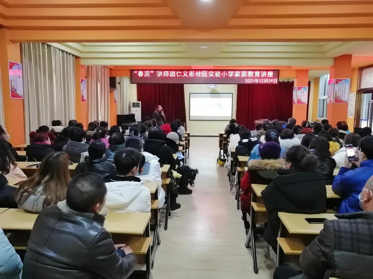 2021年12月24日,老河口市社区教育学院、市“春泥”家庭教育讲师团在仁义街社区联合举办主题为“生存训练促进孩子的适应能力”的家庭教育讲座。由“春泥”讲师团成员、老河口市袁冲小学名师工作室杜君青老师面向仁义街社区100多名家长主讲。