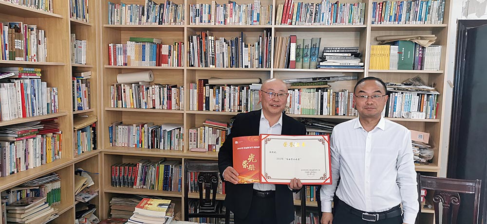 202339日下午,春光明媚、惠风和畅,受中国成人教育协会委托,谷城县教育局局长杨爱民、社区教育指导中心主任朱传平、执行主任邹永军、教育局职成股雷雪松同志等一行来到五山镇杜权成书画收藏馆,为2022全国百姓学习之星称号获得者杜权成老师颁发荣誉证书。