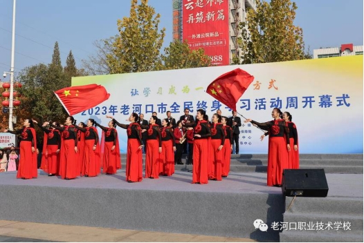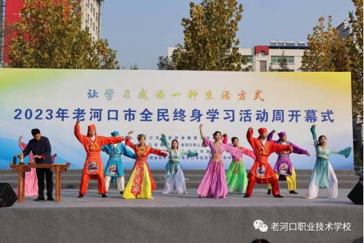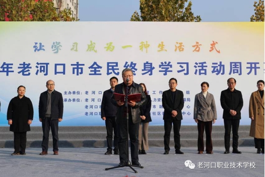11月21日上午,由老河口市全民终身教育工作领导小组主办,老河口市教育局、人社局、老干部局、融媒体中心、职业技术学校、社区教育指导中心承办的2023年老河口市全民终身学习活动周开幕式在老河口市抗战广场举行。