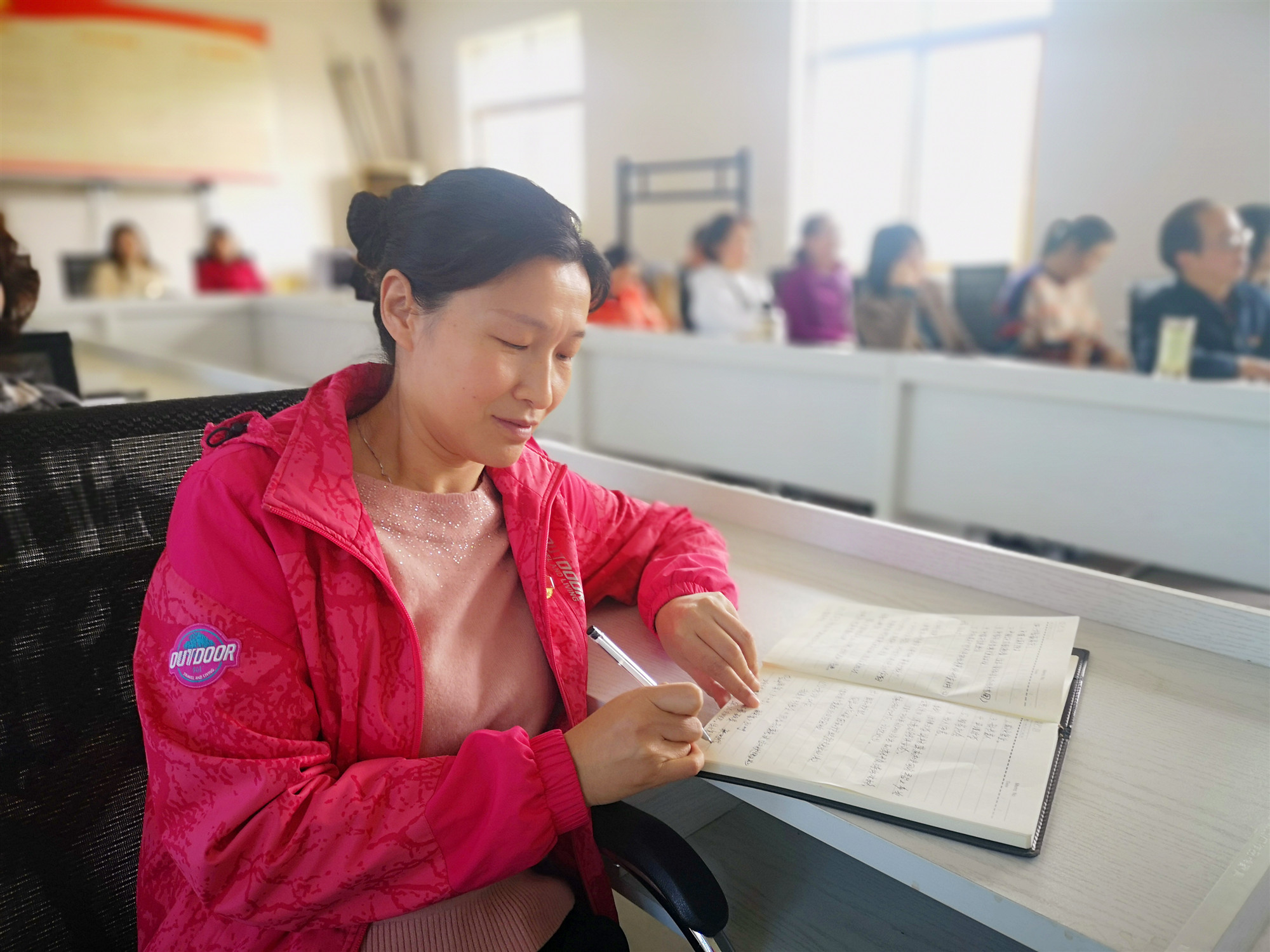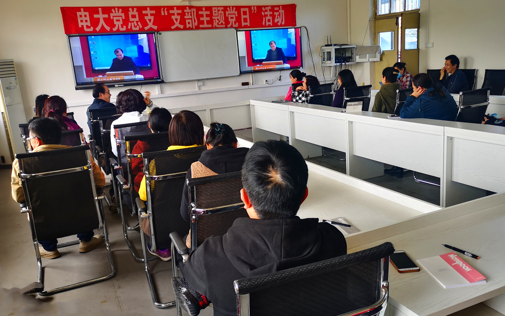 学员在不同的岗位不同的地点同一时间认真观看讲座