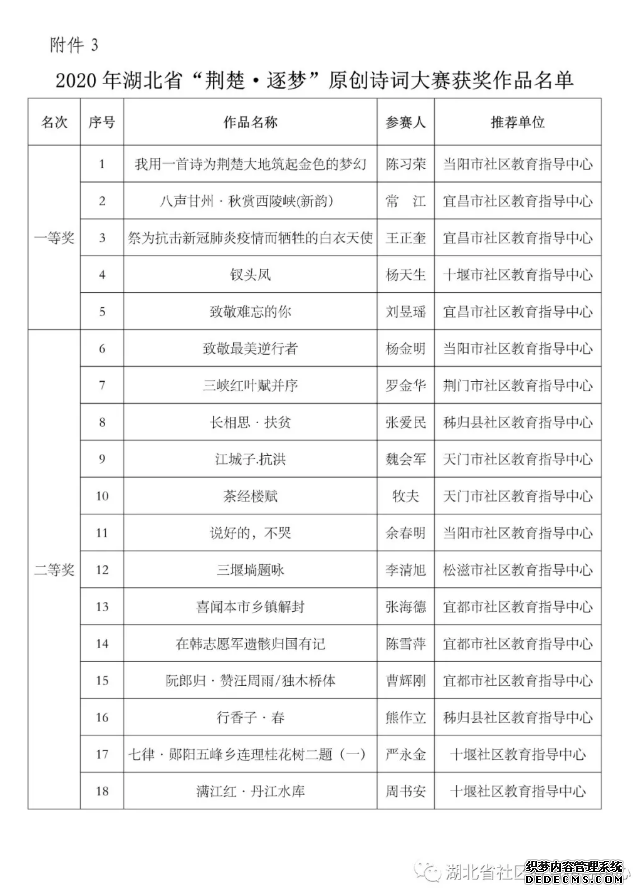 附:博鱼登录拟认定2020年湖北省“笔墨生辉”书画比赛、“最美光影”摄影比赛、“荆楚.逐梦”原创诗词大赛获奖名单得公示