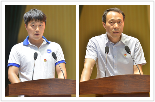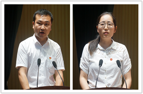 大会举行预备党员入党宣誓仪式。王泉钰同志、王楠同志分别代表预备党员、老党员进行发言。