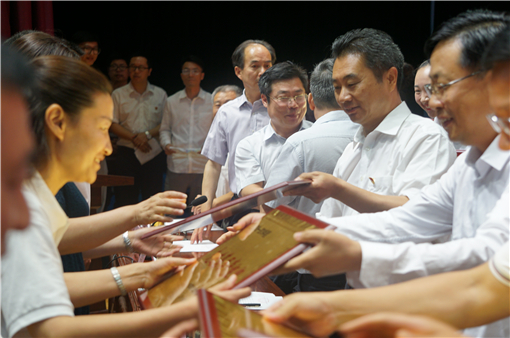 副院长王达文宣读表彰决定,对2018—2019学年先进基层党组织、优秀共产党员、优秀党务工作者进行表彰。与会领导为受表彰的先进基层党组织和优秀个人颁奖。