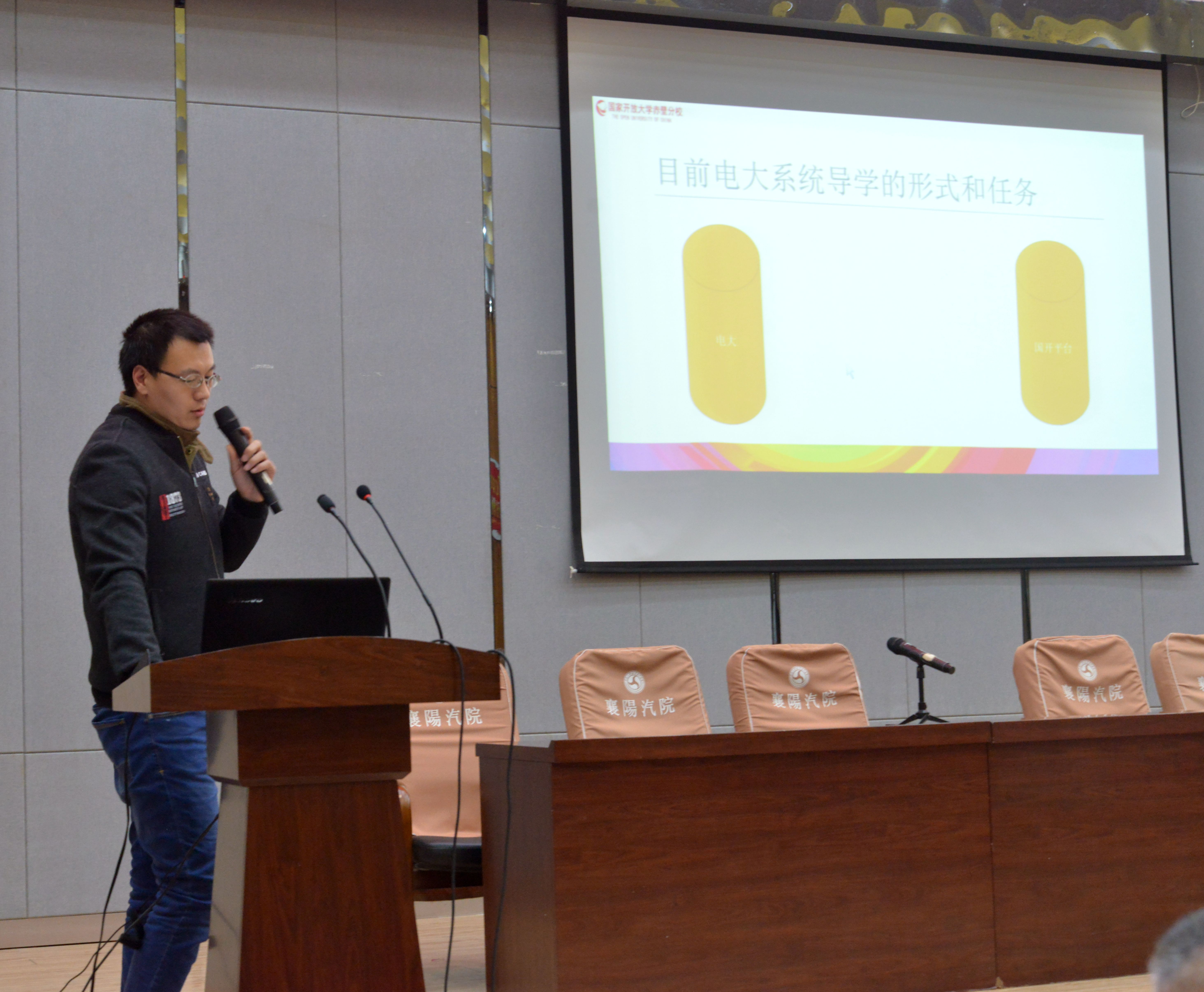 此次系统会议特邀请到咸宁赤壁电大句宏亮老师,以他长年从事开放教育导学的优秀做法和经验做了详细的介绍。