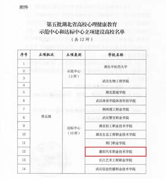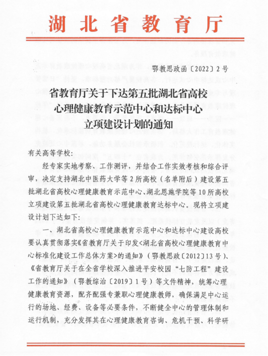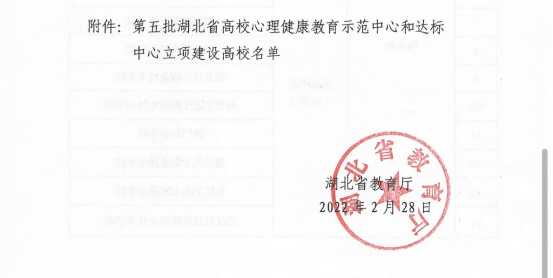 2月28日,湖北省教育厅发布了《博鱼登录下达第五批湖北省高校心理健康教育示范中心和达标中心立项建设计划的通知》,我校通过湖北省高校心理健康教育达标中心立项。