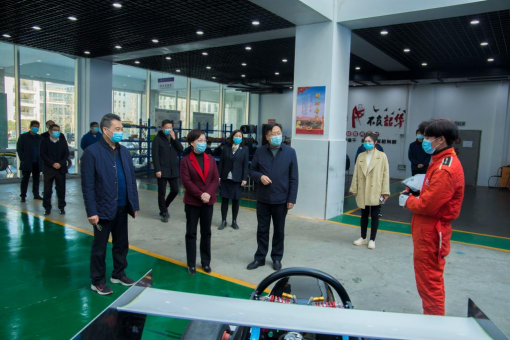 王芳听取了学校建设发展情况汇报,实地查看了FSC大学生车队工作室和实训中心。