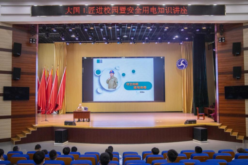 张国山首先在科学会堂为师生做“守护光明 续写传奇 ”主题讲座,他结合自身的丰富经历,通过生动的案例和故事,向同学们传授宝贵经验和人生感悟,生动诠释了劳模精神、劳动精神、工匠精神的深刻内涵。同时为同学们普及了用电安全知识、无人机技术及应用范围。
