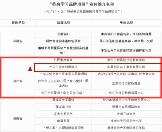 8月31日,我市社区教育指导中心联合谷城县教育局、谷城县社区教育指导中心精心打造的《“云”游乡村话振兴》项目获批全国“终身学习品牌项目”推介。