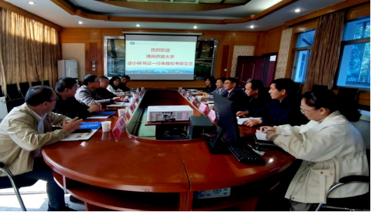 座谈会上,傅强对博州开大一行的到来表示热烈欢迎,他从组织架构、融合发展、综合改革、体系建设、制度建设等方面介绍了我校近几年办学情况和重点工作推进情况。