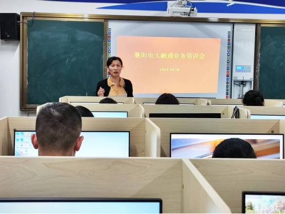 2023年10月18日,开放教育工作部在5号楼5楼机房,组织开放教育业务贯通融通第二次培训会议,开放教育工作部部长彭金玲、电大教务科嘉主任、导学中心全体人员及各院系教务员、辅导员参加了培训会议。
