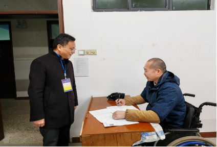 三、用心用情,周到服务。学校党委高度重视,各部门周密配合,用爱心和真情守护每一次的开放教育国家级期末考试。考前后勤安保部门提供市一级电网保护、医护人员携设备进驻考场内、保安全程警戒线内出行验证。为了解决成年人考生考试时出现的各种问题,学校专门制定了志愿者服务方案,成立志愿者服务团队,为学员提供各种爱心服务,他们分布在大门口咨询台、专用补打准考证打印机前、楼层清理岗位、特殊残疾考生服务等岗位。此次考试有一名残疾考生,申请上级领导同意后增设特殊考场并派专人进行监考,辅导员提前联系,设专人从入门推轮椅进考场座位,时时处处体现了襄阳电大的考场温度,彰显国开人文关怀。