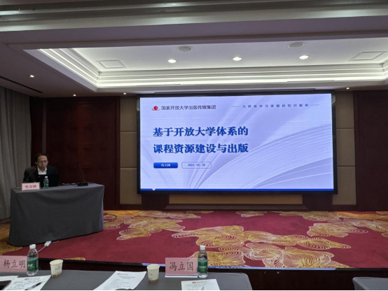 国家开放大学出版传媒集团党总支书记、董事长、总经理冯立国围绕国开教材建设做了介绍。
