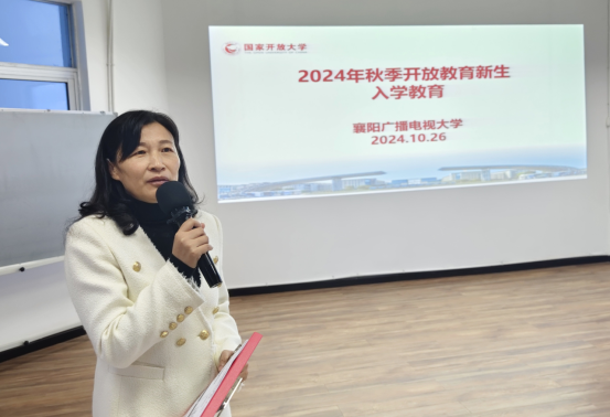 随后彭金玲主讲《入学教育》,从认识国家开放大学、学籍信息、学习形式、考试方式、毕业5个常识、学业6点须知等六个方面展开细致的讲解。最后勉励同学们,知识改变命运、电大助你成功。