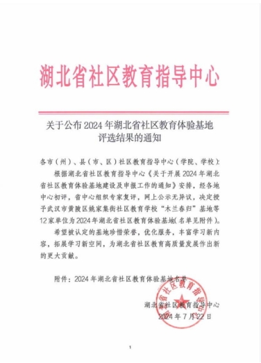 近悉我市两家单位荣获2024年湖北省社区教育体验基地称号。