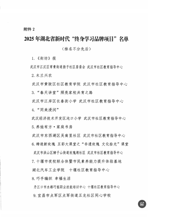 2.2025年湖北省新时代“终身学习品牌项目”名单