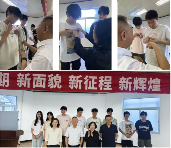 校领导为新生代表佩戴校徽。