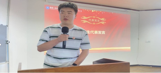 教师代表刘润戈老师发言,学习之路无坦途,但在电大,老师们会全力助你们跨越困难。愿你们坚持梦想,将知识用于实践,保持学习热情。期待看到你们在电大学到真本领,不断成长进步,收获属于自己的精彩!