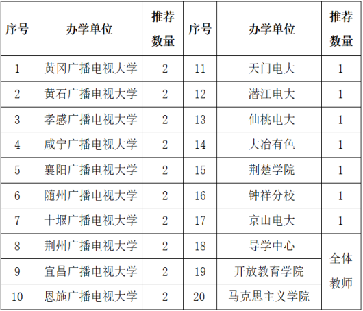 各市州电大负责做好统筹落实工作,选派体系优秀教师参加开放教育课程教学培训工作。具体安排见分配表: