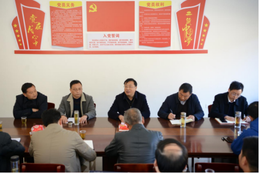 在茅坪村委会议室,耿保荃一行与镇、村领导和学院驻村工作队成员进行座谈。村支两委和工作队详细介绍了现阶段工作开展情况,并进行了深入交流。