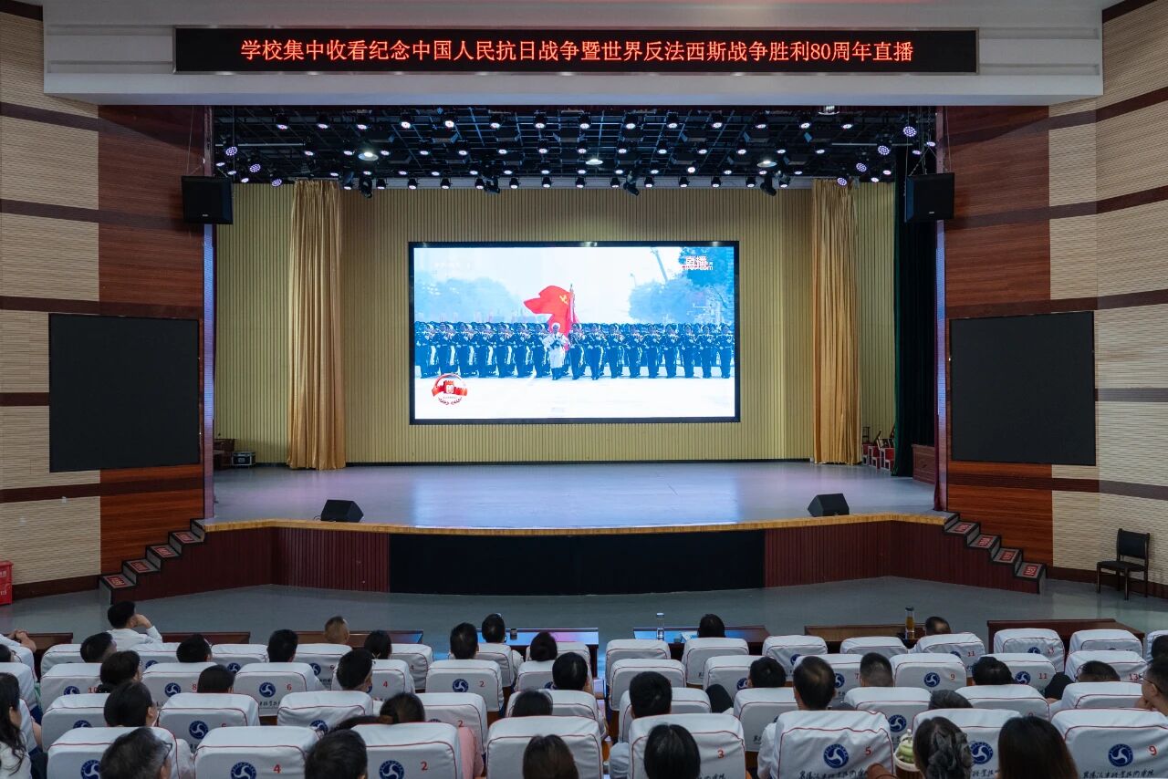 9月3日,纪念中国人民抗日战争暨世界反法西斯战争胜利80周年大会在北京天安门广场隆重举行。上午9时,学校党委书记程传红及领导班子成员率全校教职工在科学会堂集中观看,各院部学生通过多种形式集中收看直播,共同上了一堂生动的爱国主义教育和国防教育课。